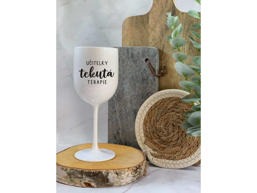 Bílá plastová sklenička na víno TYP II UČITELKY TEKUTÁ TERAPIE